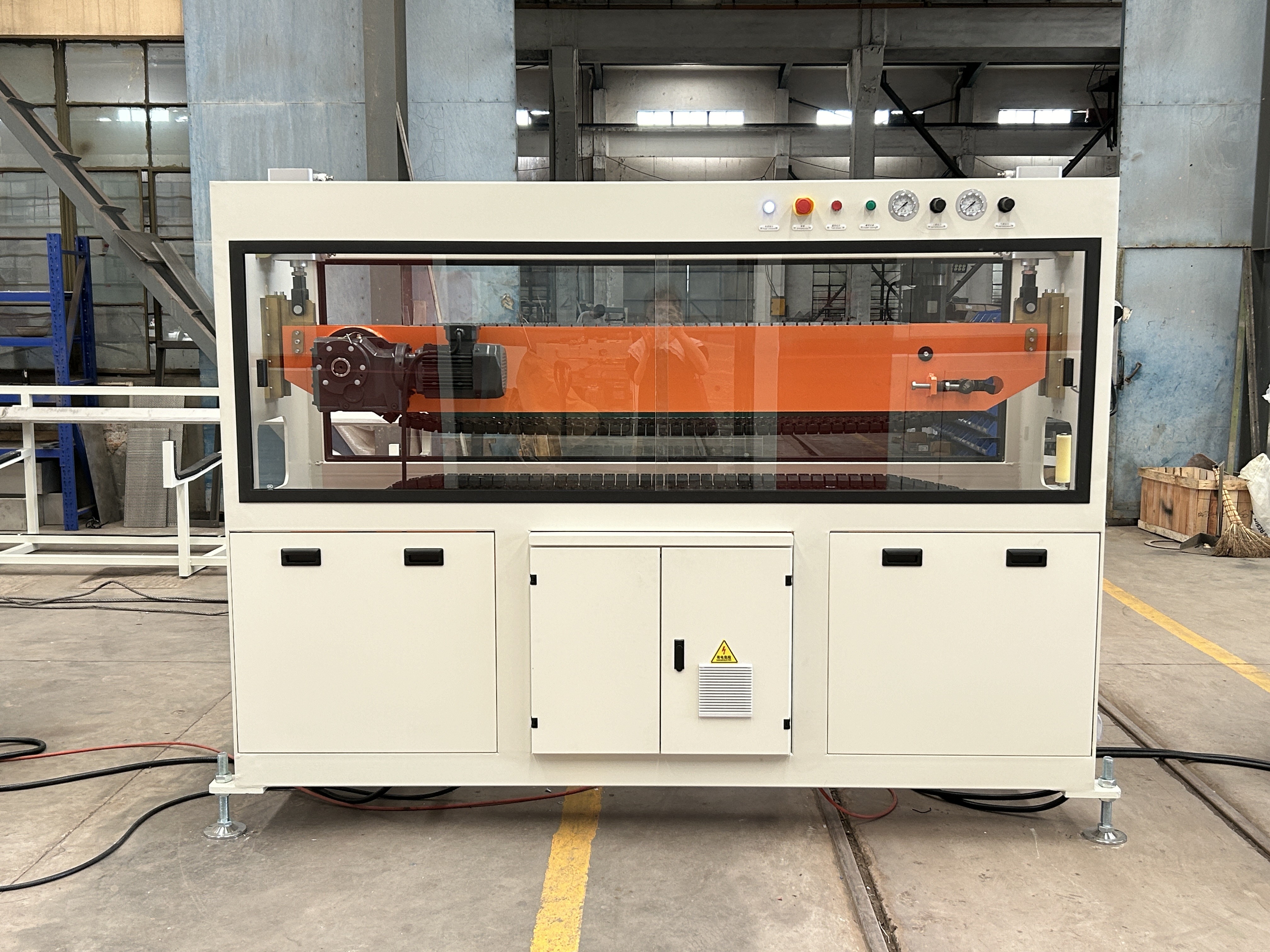 Sử dụng các vít đơn hiệu quả cao, được thiết kế đặc biệt cho vật liệu hạt PP, PE để đảm bảo làm mềm đồng bộ, ép cao.Hệ thống điều khiển nhiệt độ ổn định có thể đảm bảo chất lượng cao ống đè.