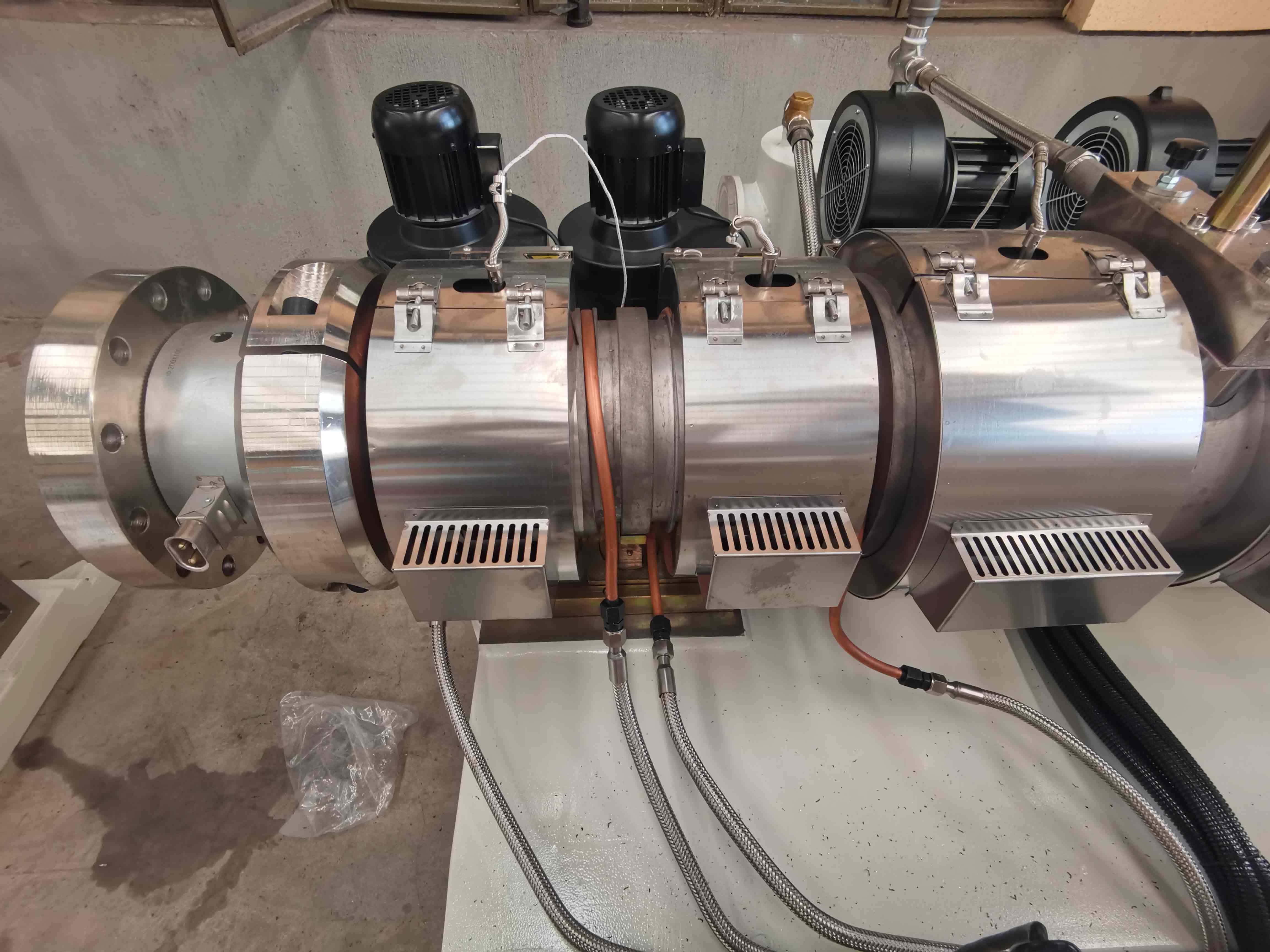 Đường dây sản xuất ống này bao gồm máy ép, ống nước, đơn vị cắt dây đai, máy quấn sợi và cuộn ống, v.v.cấu trúc độc đáo, Hiệu suất đáng tin cậy,làm việc đơn giản,dễ bảo trì và năng lực sản xuất liên tục.Hệ thống làm mát nước áo khoác là trên vùng cung cấp và tất cả các khu vực của thùng được làm mát bởi máy thổi không khí. Các bộ sưởi được gắn trên thùng.