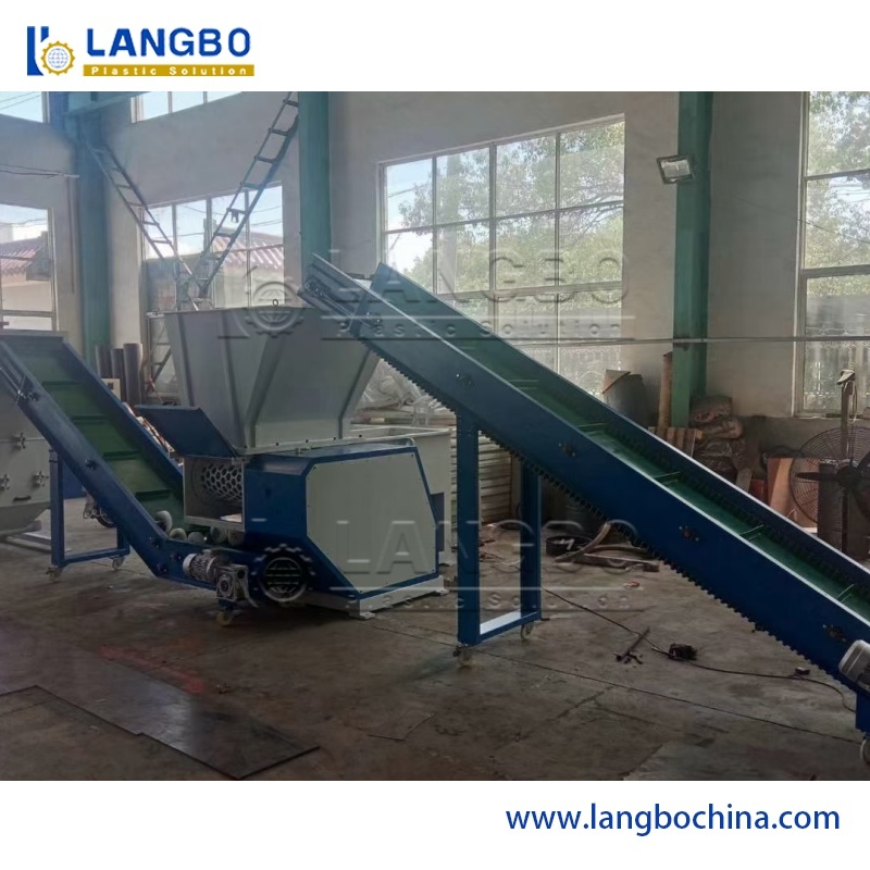 Trước khi dây chuyền đùn ống HDPE hoạt động trơn tru để đùn ống, công nhân cần khởi động máy và điều chỉnh mọi chi tiết trong suốt quá trình. Trong quá trình này, sẽ tạo ra nhiều cục nóng chảy PE bị lãng phí. Chúng là những khối lớn và đủ cứng. Do đó, nó không thể được xử lý bằng máy nghiền, nó chỉ có thể được xử lý bằng máy băm. Máy băm một trục của chúng tôi có tốc độ quay cao và dao hình dạng. Công nhân đưa các cục nóng chảy bị lãng phí qua cửa nạp và các hạt sẽ rơi ra từ cửa xả.
