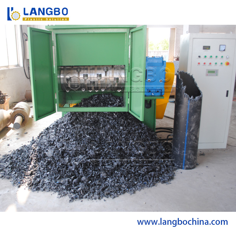 Before the HDPE pipe extrusion line runs smoothly to extrude pipes, workers need to start the machine and adjust every details during the whole process. In this process, there will produce many wasted pe melt lumps. It is big blocks and hard enough. Therefore it can't be dealt with crusher, it just can be processed by shredder. Our single shaft shredder has high rotation speed and shape knifives. Workers put the wasted melt lumps through the port and particles will be fall from the outlet.