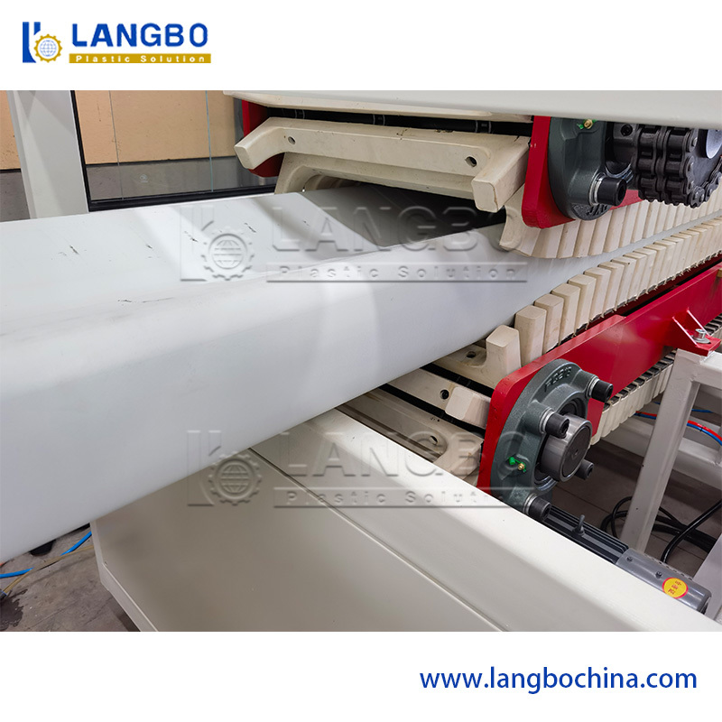 Haul-off System Provides uniform force distribution across all caterpillars with sufficient hauling capacity. High-quality rubber components and pneumatic pressure system enable easy adjustment and product protection.