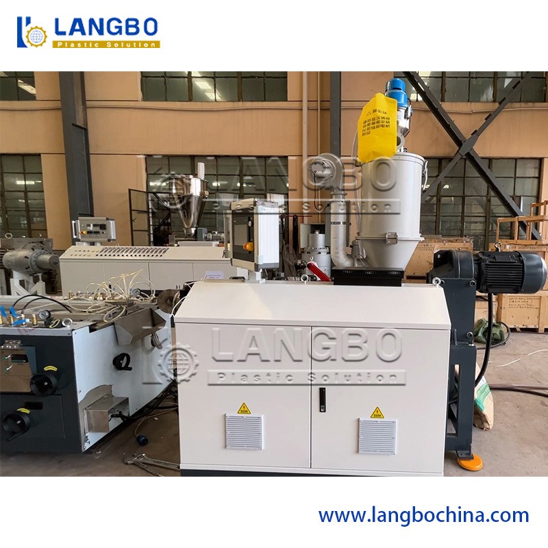 Ở các nước phương Tây, thị trường đèn LED là rất lớn và nhu cầu rất lớn.Hai màu PC LED ống cần co-extrusion thủ công. Đối với dòng này, nó trang bị một 65/28 22kw extruder và một 50/28 11kw extruder. co-extrusion đảm bảo hồ sơ với hai màu sắc. chúng tôi áp dụng 2500mm dài và 600mm rộng ccho máy kéo, nó là hai dây đai kéo phương pháp. Nó đảm bảo các nắp và dưới LED ống đèn cố định nhau rất nhiều.chúng tôi có cutter đơn vị và stacker để nói dối các hồ sơ PC hoàn thành.