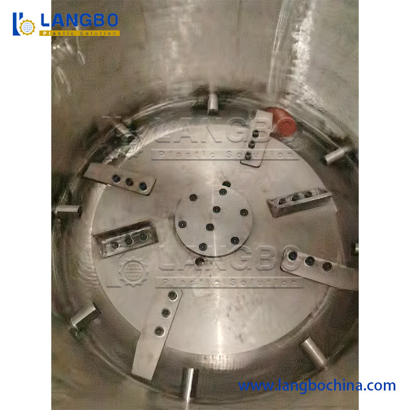 Rác thải nhựa được đưa vào buồng máy, nơi mà lưỡi dao quay tốc độ cao và lưỡi dao cố định làm việc cùng nhau để cắt vật liệu.hoặc các tấm chảy dọc theo các bức tường của buồng trong khi trải qua trộn liên tục và chuyển động.