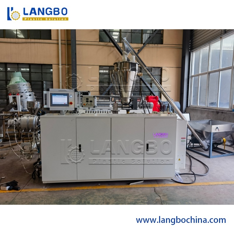- Máy đùn trục vít đôi với thiết kế trục vít hiệu quả, tốc độ trục vít cao hơn, năng suất và khả năng hóa dẻoThiết bị định hình chân không: