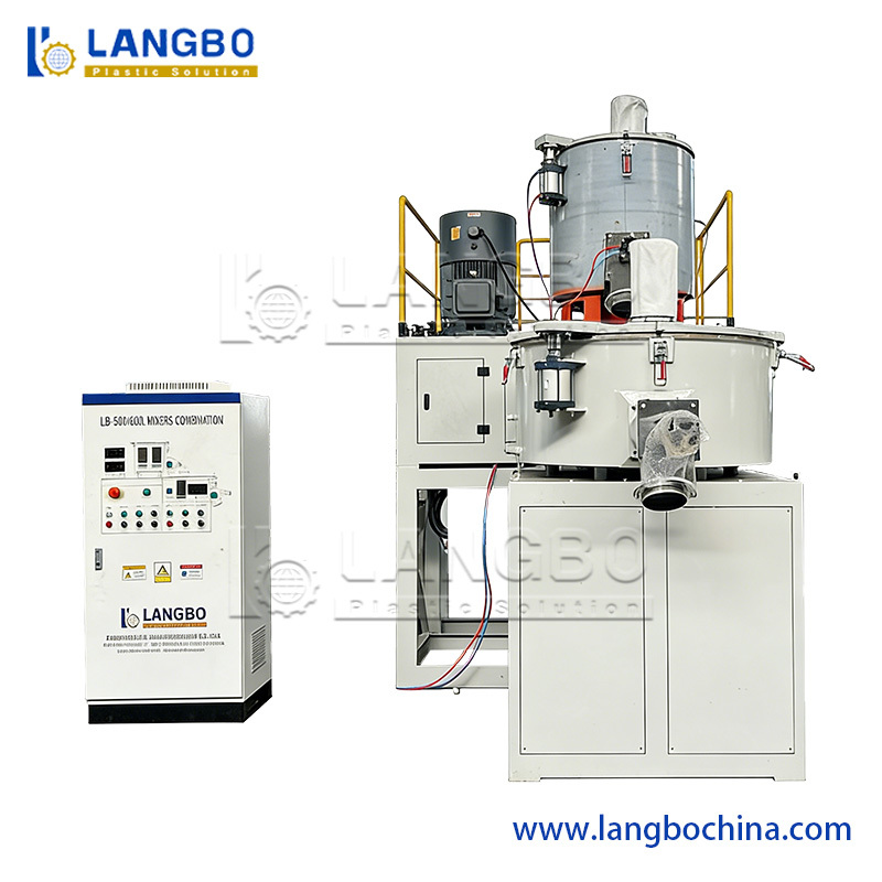 Máy trộn máy sưởi và máy làm mát PVC với các máy vận chuyển vít để đẩy hồ sơ PVC